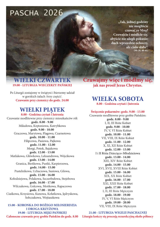 na każdej mszy św. (zaczynamy 20 min przed Eucharystią)